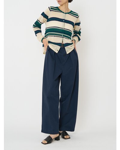 クリアな表面感のコットンツイルを使用し、製品バイオストーン加工を施したマルチユースなチノパンツ。