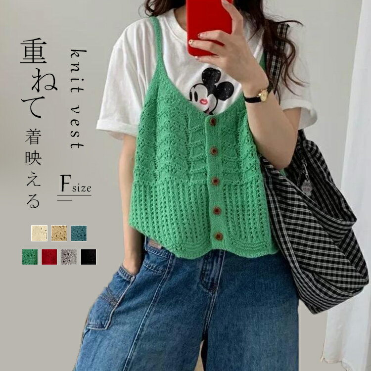 重ね着してお洒落が仕上がる!今年らしいコーデに仕上がるベスト。 森ガール ビスチェ ニット レイヤード vネック トップス ショート丈 シンプル 抜け感 大人 20代 30代