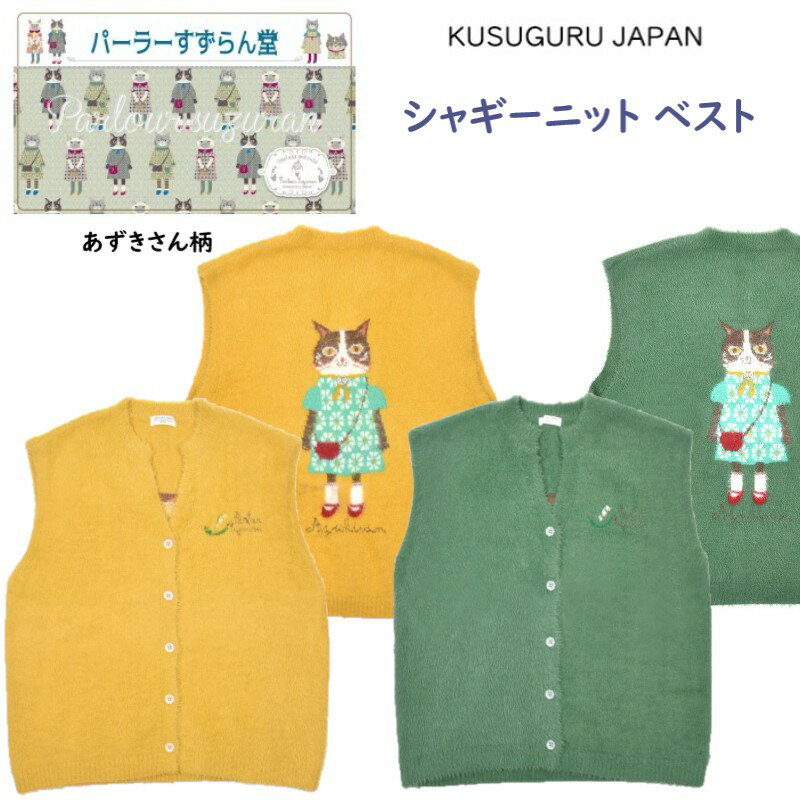 25-8639 シャギーニット ベスト あずきさん柄 KUSUGURU JAPAN
