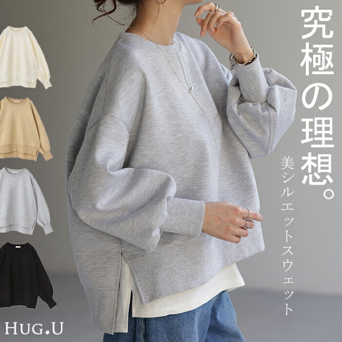 スウェット トレーナー ラウンド裾 クルーネック ラウンドネック 美シルエット 暖かい 着回し レイヤード シンプル カジュアル ナチュラル 無地 リブ ドロップショルダー