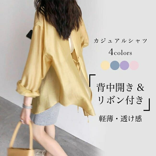 【送料無料】背中開き 長袖シャツ カジュアル レディース シアー